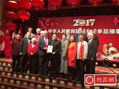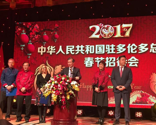 1月26日,在农历鸡年到来之际,中国驻多伦多总领事薛冰及夫人赵珺率领事馆一众同仁在钓鱼台国宴举行盛大新春招待会。记者一进入酒会大堂,就感觉一新:新春的音乐,红彤彤的中国灯笼,各种吉祥的年庆装饰,盛装的宾客,华人熟悉的三级政府官员⋯⋯南腔北调,中文英文,有的三三两两谈笑风声,有的兴高采烈和政治人物摆着各种姿势合影留念⋯⋯这真是一个亲民的,中国式的新春之夜。身处其中,还以为是在中国过年呢。