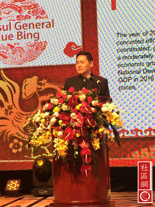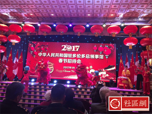 接下来是中国传统的舞狮贺岁,灯火辉煌的大厅,人头涌涌,嘉宾们心随鼓动,掌声不断,这古老的表演,最是触动中国情节,使人乡情惆怅。总领事薛冰的新春致词更是令现场掌声雷动,他总结了2016的工作成果和展望2017的工作计划,并转达祖国对海外侨胞期盼和关爱,分析中加从文化和经济等等各方面的合作交流,并希望两国之间的友谊更上一层楼。