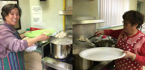饺子宴过,茶话会正式开始,饺子馆的义工姐妹们默默的退出了厨房,静静的坐在后排开始吃饺子看文艺演出,而另外的两位义工们自觉的进入了厨房,替换之前忙着煮饺端盘的姐妹们,开始了清理打扫厨房的工作。