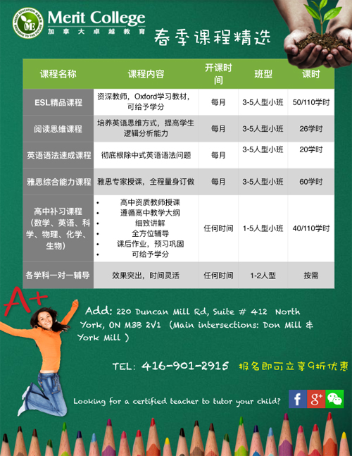 我们的北约克校区主要以课后针对性辅导课程和英语技能课程为主,同时兼顾卓越历年最受欢迎的ESL课程、阅读课程、各类学分课、雅思高分课,所有课程均为小班开设,学习氛围浓厚,效果显著,能帮助更多的中国学生实现加拿大名校梦。