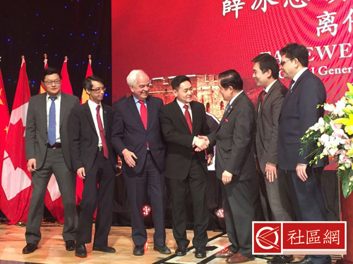 3月3日晚记者应邀出席在钓鱼台国宴餐厅举行的中国驻多伦多总领事馆总领事薛冰夫妇离任招待会,同时也是庆祝薛冰荣升巴布亚新几内亚大使。现场人头攒动,华光丽影,薛冰和夫人更是和蔼可亲,平易近人。总领事夫妇站在大厅门口,迎接每位到场的嘉宾,问候惜别留影。宾主之间,笑语盈盈中夹杂着淡淡的离别伤感–人生就像旋的Carousel ,它无声地旋转,在我们经历了无数的悲欢离合,回头來瞭望,依然是一个华丽而完美的结局。