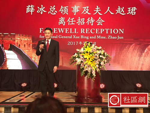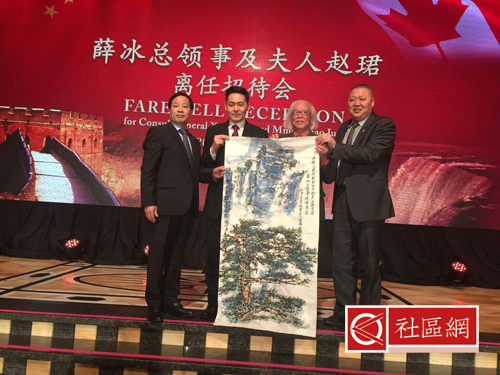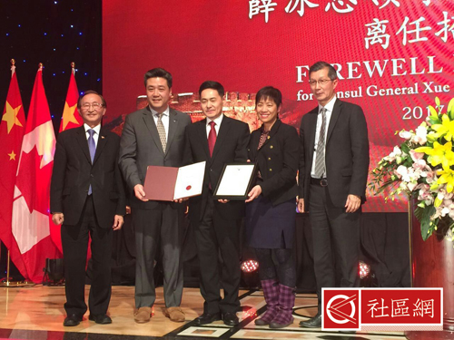 薛冰先生是一位勤奋的人。现场播放的视频粗略地记录了他两年来的工作状况:如果用一个字形容,那就是“忙”,如果用两个字,那就是“繁忙”……不过,他忙得那样精彩,神彩奕奕,永远都在最佳的工作状态。他的身影遍布多伦多,只要有华人的活动,基本上都留下了他的身影,温文尔儒雅的笑容,他是我们多伦多公认的,是历届最帅最有书卷气的总领事!
