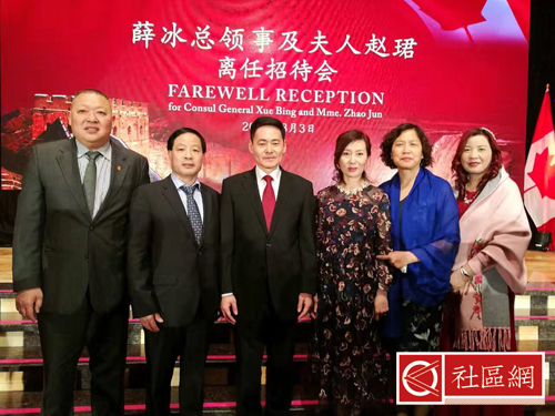 时间是不会停留的!天下沒有不散的宴席,杯盘狼藉,折柳遍地:举目四望,灯火依然辉煌,笑容依然明媚,薜冰夫妇不辞辛苦地微笑着,与排着长队的嘉宾们一一留影。记者从头到尾特别留意,发现薛冰夫妇连晚餐也没有时间吃,一直在同客人们话别,同嘉宾们合照。记者打消与薛冰夫妇合照的念头,他们也实在太累了。这一年在各种工作场合同薛冰夫妇也算得上低头不见抬头见,虽然他们在台上我在台下,各有各的工作岗位,交流谈话的机会也并不很多。但人都是有情的动物,想到他们夫妇将一去万里,他日再见,也不知何年何月。在这为送别而来的夜晚,心难免有些伤感。