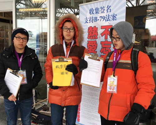 Peter补充说,华联会领导成员也亲历亲为,抽出时间,充当义工角色,收集签名。Peter特意叮嘱笔者,假若有读者或商家愿意参与该次活动,请与华联会联系。为此,Peter特意留下联系电话416-888-1268或者416-562-2178,大家可以直接联系他。假若有人对79法案有顾虑,也可以电话联系,他自己或有专人与您共同探讨。