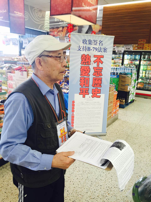 3月5日多伦多华人团体联合总会(简称华联会)率众多华社机构举办新闻发布会,呼吁大家“不忘历史,热爱和平”,积极签名,支持“南京大屠杀纪念日法案(Bill 79)”第三读顺利通过。在新闻发布会上,华联会主席林性勇提出了一些具体措施,方便大家签名。其中最重要的举措就是派出大量义工前往超市、工厂、餐厅、社区中心等华人集聚现场,收集大家签名。那么,通过一周多时间的准备与实施之后,这些措施进展如何呢?