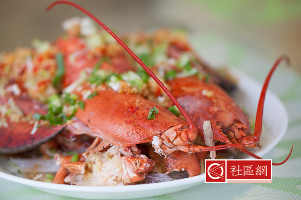 龙虾洗干净放尿、对剖两半,铺在粉丝上,浇上用蒜蓉、生抽、鱼露和白葡萄酒调的滋汁。上大火蒸。