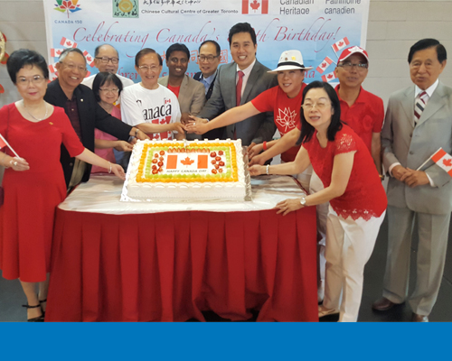 联邦国会议员陈圣源、省议员赵成俊、市议员杨士渟及Neethan Shan、文化中心顾问及董事等,7月1日与不同族裔的坊众在大多伦多中华文化中心庆祝加拿大立国150年。多位本地的暑期生和来自香港的实习生,联同中心的义工一起参与不同环节的筹备工作。