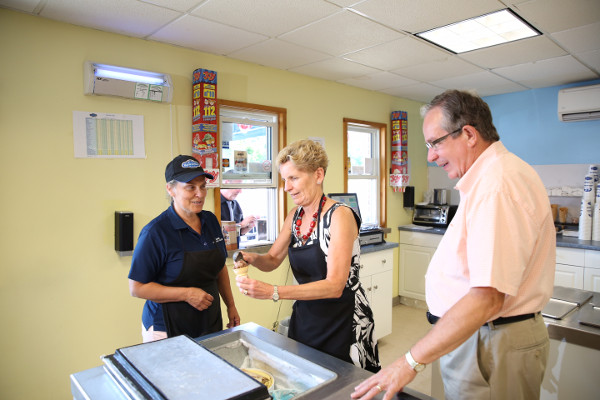省长韦恩将准备好的雪糕售予正在轮候的顾客