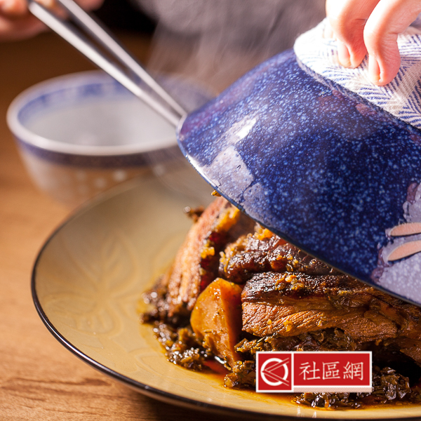用压力锅蒸70分钟,起锅,倒扣入碗中,咸烧白就好了。