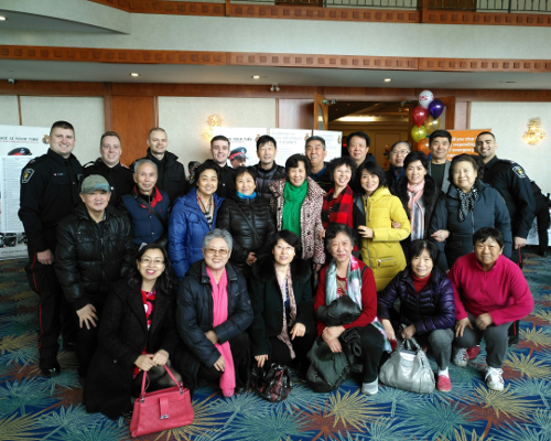 参加这样的活动,我们感到非常有意义并有很深刻的感受,我们体验到加拿大警察的英俊威武和笑容可掬的可亲,切身感受到各族裔之间的相互尊重、和睦、包容、公平的价值理念,亲身体会到在加拿大生活的各族裔,人人都应有尊严和快乐生活的平等权利,人人都应担当起保护有尊严快乐生活的义务和责任。在此,感谢约克警察局举行此活动,感谢约克警察局先生江警官对社区工作的支持和帮助,谢谢参加活动的欢乐人生的朋友们!(欢乐人生文/韩晓霞,图/吴观发、赵忠珍、杨芳、人勤春早等)