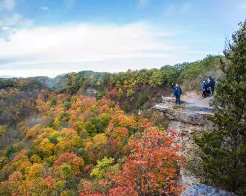从山间小道进入景区,首先映入眼帘的是tew’s瀑布。tew’s瀑布落差虽然达四十余米,但水量并不大,丝带般的瀑布缓缓流下,若隐若现若有若无,如同一个美少女,秀气优雅却又扭扭捏捏羞于见人。离开Tew’s瀑布沿山路步行约三十分钟到达Dundas峰。登高赏枫,Dundas峰的确是一个绝佳的选择。这里地势险峻,层峦叠嶂,悬崖交叉错落,深不见底。山中的气候阴晴不定,刚刚还是白云蓝天,瞬间风雨大作,夹杂着豆大的冰雹猛然袭来,给人一种别样的刺激。风雨过后,阳光驱走了乌云,站在悬崖边探身俯瞰,落木萧萧,万类霜天,人的精神为之一振,胸怀似乎也变得宽广了。放眼望去,漫山遍野的枫林层次丰富饱满,色彩斑斓鲜艳,极具观赏性。同行的好几位朋友与笔者一样,九月底前后曾分别与家人到蓝山、尼亚加拉等处看过枫叶,感觉远没有今天好。看来凡事都急不得,必须尊重客观规律,计以时日,静观其变,才能获得最好的结果。 这片片枫叶只有经历了四季轮回,饱受严寒酷暑,聚集日月精华,才能成就今天的姹紫嫣红,展现给世人以生命中最灿烂华美的一面,我想,这也是此次赏枫之旅带给我们的启示吧!