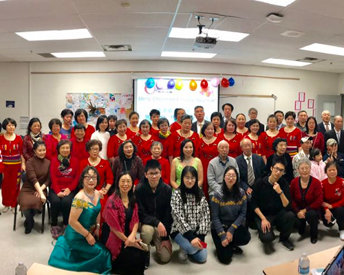 12月14日晚、欢乐人生组织在Bur Oak高中举行了:庆圣诞,迎新年暨欢乐人生朋友们10月11月12月份庆生日联欢晚会。晚会还没开始,人们穿着五颜六色的服装,画着淡妆,陆陆续续来到会场,顿时洋溢起一派节日气氛!主持人宣布晚会开始,拉开狂欢序幕,大家起立,齐声高唱加拿大国歌和中国国歌。