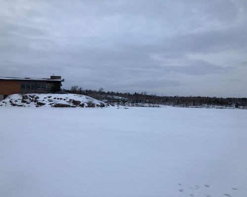 从网络得知,Adanac Ski Hill有垂直落差为240英尺的雪道,从地图看,旁边就是Rotary Park,有着美丽的步行道(Trail)。在这种情况下,尽管没有办法滑雪,但还是计划去雪场附近溜达一把。从Northern Exotics出来之后,时间尚早,我们直接往Adanac Ski Hill走。该雪场位于Sudbury东北角,开车过去倒也比较快。