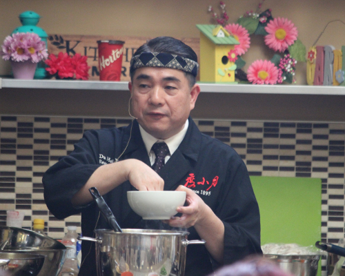 活動計劃12點半開始,但記者在12點後趕到時,兩位大廚已在忙碌著,當然還有一批義工在旁邊協助。活動正式開始之後,本次活動主辦方滑鐵盧台灣同鄉會會長張孝本女士做簡短發言。她熱情歡迎大家的到來,特別感謝該次活動贊助單位中華民國僑務委員會,以及眾多義工的辛勤付出。駐多倫多台北經濟文化辦事處華僑文教服務中心主任李叔玲介紹說,以“台灣美食,寰宇飄香”為主題的美食廚藝巡回講座今年總共有12場,其中北美就7、8場。希望鄉親們有機會品嘗台灣美味,更歡迎大家前往台灣,體驗更地道的台灣美食。