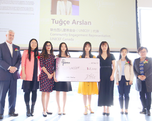 百年大计,教育为本,儿童是未来的希望。本次研讨会将募集的$2,000多善款如数捐赠给联合国儿童基金会。在现场嘉宾共同见证下,英狮教育集团创始人韩子菲将支票捐赠给UNICEF代表Tuğçe Arslan,体现了所有教育工作者对儿童的关心和爱护!同时,加拿大高中校友联谊会主席张舒帆为本次慈善捐款做出贡献的赞助商们颁发了荣誉证书,以表彰他们的善举!