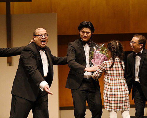 今晚的演出嘉宾、著名小提琴家黄定一、钢琴家谢家瑜联袂演绎了《萨拉莎蒂》、《Carmen Fantasy (卡门幻想曲)》,美妙的乐曲令观众如痴如醉。加拿大著名男高音Joey Niceforo 在演唱了L’hymne a L’amour和Mattinata之后,出人意料精准地演唱了中文歌曲《月亮代表我的心》,引发又一个高潮!