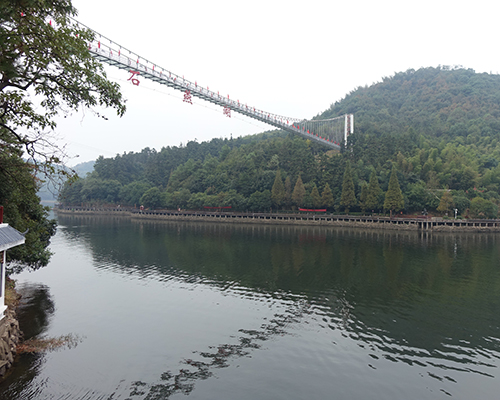 走过玻璃桥,我们沿山而上,就到了金龟岛。形似静卧水中的老龟,每逢晴日,晨曦初露,可见绕龟背而成金光万道,人疑为金龟;岛上有塔叫万福万寿塔,塔旁有一卒观音古庙。岛的东面有一石梯,脚踏其上有“铿锵”如击鼓之声,人称通天响鼓梯。之后沿山而下,搭乘渡船过湖。