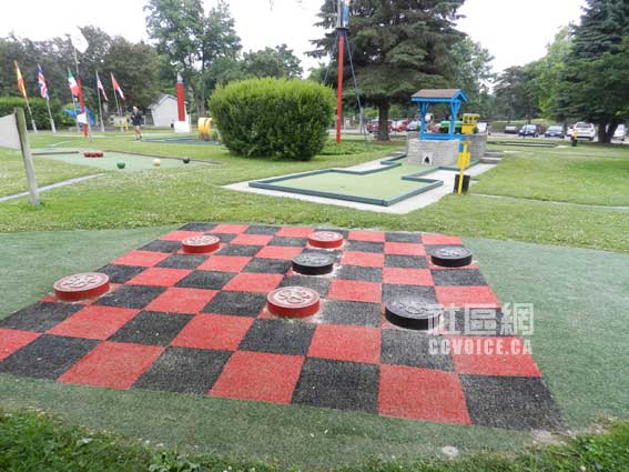[本报记者 伦敦摄影报道] 生活在多伦多的人,大多知道在夏天,Canada Wonderland是全家老少游玩的理想场所。特别在炎热的夏季,Canada Wonderland能够吸引更多的人,因为期间的水上运动还真不少。那么,远在伦敦,我们又有什么好的选择呢?本刊上期所载有关Storybook Guards,特别适合于儿童,而不能太多的吸引少年。经朋友推荐,笔者特地前往伦敦东部,位于Hamilton街和Clarke街交界处的East Park Golf Gardens(简称East Park),希望大家会感兴趣的。