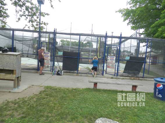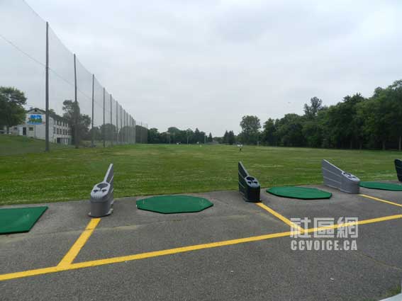 通过赛车道,在市内运动的旁边,搭建有格网密封的几个场地,那就是棒球练习场(Baseball Batting Cages)。一边有机器自动发球(Slo Pitch Batting Machine),小孩在另一边随意挥棒,大家玩得不亦乐乎。棒球速度可根据小孩的技巧来选择,包括有45、65和95公里/小时的下、中和上水平。从棒球房穿过,沿着小道,再往南走,就是一个好的高尔夫练习场,笔者感觉这应该是老少皆宜的练习场。发球区台既有垫子式的(Mat),也有草地式的(Grass)。靠近公园部分是垫子发球区,而浩大的草场发球区应该从后门进入,即靠近Clarke街(笔者没有前往!)每周三,购买一大桶高尔夫球,可以免费获取一小桶高尔夫球,这是过去15年来的老传统。在垫子发球区,笔者只看到一个小孩在父母陪同下在练习,其他部分都是空空的。