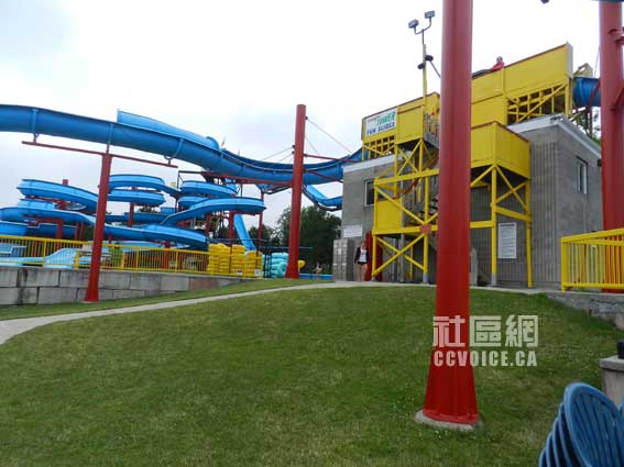 对于笔者兴致来说,室外运动才是重点。类似,East Park的室外游乐也有不同的选择,所以能够满足不同游客的需求的。笔者进入的第一部分就是与水相关的运动,这是比较复杂的部分,包括Splash Pad,Intencity Tower Slides,Wally Tower和Speed Slides四种强度不同的项目。比方说,Splash Pad就是老少皆宜的运动,在许多小型公园都能见到,但绝对是婴儿的最爱,碰碰水,有没有太大的冲击的。中间休息还可以在四周的凉椅上休息或日光浴,或者看着你的小孩追逐游乐。这一部分应该是新近添加的。Intencity Tower Slides是相对比较平缓的滑水,小孩要求身高36寸以上,而Wally Tower高约55尺,有5条滑道,其中2条有扭转功能,2条有极端速度(即Speed Slides),还有1条是适合两人或1人的管道,惊险无比,分别适合身高45寸和48寸以上的小孩。
