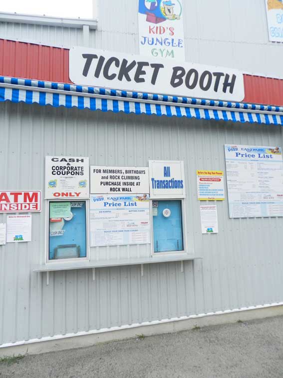 在East Park,游玩的包括有两大块,即室内部分和室外部分。对于室内部分,笔者兴致不高,而且比较阴暗,所以没有拍照,主要游乐包括有下面几种。第一,入口处右边的攀岩运动(Rock Climbing)。2000平尺的攀岩,高达40英尺高,可能每一个人都会觉得这是一种挑战。第二,大家熟悉不过的碰碰车(Bumper Cars),可以做360度旋转。第三,丛林穿行(Jungle Gym),有2层,包括爬行、滑行、游玩或跳跃,适于12岁以下小孩。第四,各式游戏机(Arcade & Redemption Games),梦幻般的游戏,赢取还可以多玩,甚至回购你的门票。