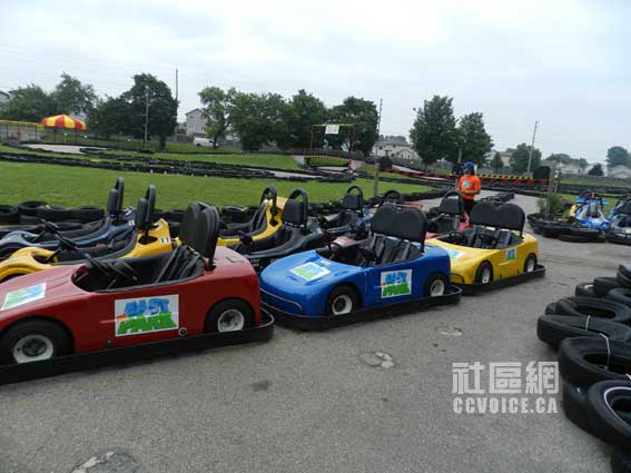 毗邻水上运动的就是赛车道,中间只有一道铁丝栏相隔,但可以看见。赛车道总长超过1,800尺,名曰Go Carts,10岁以上的小孩才能自行驾驶卡丁车,这是一项惊心动魄的运动!对于不能自行驾驶的小孩,有双人车供游客选择,即一个成人带小孩共同驾驶,每个人都回戴上盔甲的。据Alon介绍,路上可以允许20辆卡丁车同时行使。