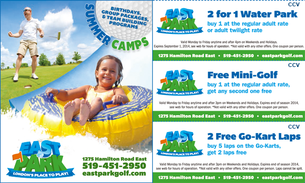 特大好消息:熟悉伦敦的读者一定知道在其西部的East Park Golf Gardens,已经有超过50年历史。East Park不仅是少儿游乐场,更是少儿与父母同乐的地方,无论是玩水,还是赛车,或者高尔夫球,你都可以找到自己所喜好的。即使是阴雨天,East Park的室内运动场,包括爬山、碰碰车等,也足够你晚上半天的。为感谢华人社区的大力支持,East Park首次推出优惠门票,请拿取即将出版的《社区报》广告或者直接打印下面的优惠券就可以享受折扣优惠,可不要错过哟!下面的文章是本刊在去年写的详细报道。
