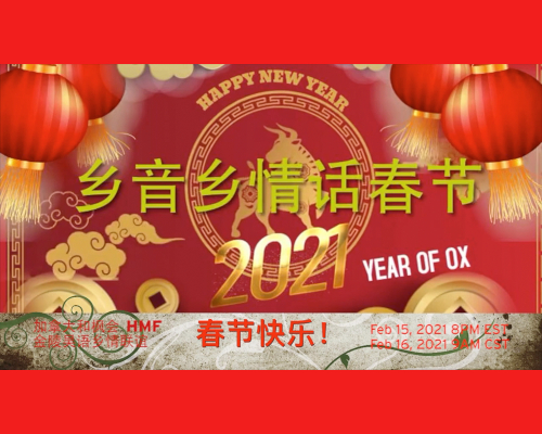 鼠年过后,牛年到,恭祝“牛(扭)转乾坤”。自2020年,新冠病毒肆虐全球,至今加拿大还在全民抗疫中。从除夕,到正月十五元宵节,华人同胞在家过春节。 2月15日美加东部晚上八点,中国时间2月16日上午九点,由加拿大和枫会主办,金陵吴语乡情联谊群、江苏师大北美校友会、河海大学多伦多校友会联合组织了一场别开生面、充满着家乡年味的《乡音乡情话春节》线上联欢会,还得到了多伦多大学、加中古文化艺术交流协会以及老人茶室群的支持。同胞们对传统节日的共同的记忆,借助云端交流,看到了故乡今朝的节日繁荣。其乐融融,观赏充满乡情的文艺节目、分享美食佳肴,还回忆在家乡过年的难忘岁月。