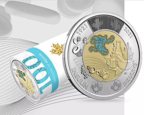 加拿大皇家铸币厂(The Royal Canadian Mint)发行了一枚全新硬币,币值$2,以庆祝胰岛素发明100周年。其设计来自Kitchener的艺术家之手。Jesse Koreck说,“自己能够成为加拿大历史的一部分是一份莫大的荣幸!”他所设计的图案出现在最新的$2硬币上。