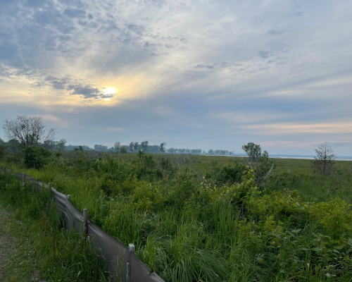 前一天开车进入公园,忙着寻找营地,笔者自然没有太多注意路旁的风景。今儿个自己有机会独步慢行,自然有时间有心情好好看看,究竟路上车辆不多,行人更是稀少!笔者发觉,道路的左边是公园领地,树木丛生那种,但是道路的右边应该是湿地,一大片芦苇丛!中间似乎有一条道走向腹地,但入口处已经拦堵,我还是坐一个守法公民吧!