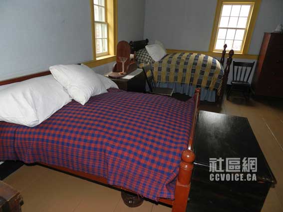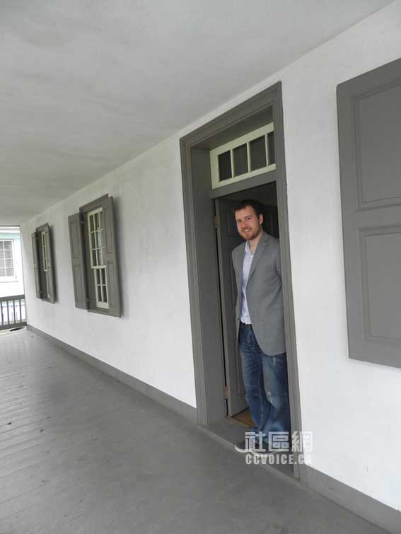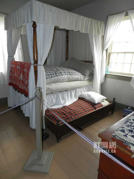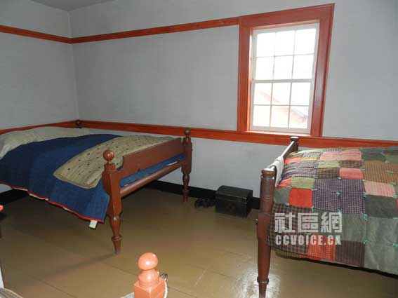 由Kyle带领,笔者沿着楼梯往上走。首先看到的是一个宽敞的客房,相对来说比较豪华。看来在那个时候,人们都是非常热情的,或者说比较看重面子吧。往右走,映入眼帘的是一个小房间,原来是给男孩子的专用房间,摆有两张床。里面的唯一特色是有一个桌子,最初笔者错误地认为是一个柜子之类!但这确确实实是一个桌子,小孩站着可以看书、写字的那种。笔者印象在曾国藩故居也见过这种桌子,但已经不是十分清楚了。紧邻这个房间有一个更小的房间,里面没有窗户,但是与男孩房间相连的部分,开辟有一个长方型的口子,光线可以从南里透过来。据Kyle解释,这可能也是作为临时客房用,当然不是给那些尊贵的客人的。