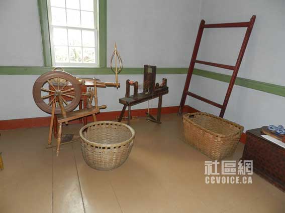 再往里走,有一个小型手工作坊,里面摆放着一些工具,诸如纺线车(与中国传统的很类似),还有小型织布机、箩筐之类等。原来这里是个女孩做工的地方,估计与中国传统的女红之类差不多。与作坊对应的就是女孩的专用卧室,这家女孩很多,房间很大,摆有4张床,还有衣柜之类。这就是整个楼上的布置!