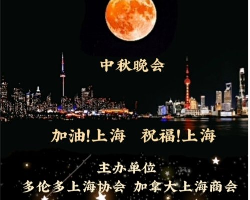 继成功举办成立五周年线上文艺晚会后,多伦多上海协会 将携手加拿大上海商会共同主办,上海交通大学多伦多校友会,复旦大学多伦多校友会,加拿大同济大学校友会,上海大学加拿大校友会 上海师范大学加拿大校友会 协办的,《海上生明月,上海共此时》大型综艺晚会,将于9月4日(星期日),晚上7:30在大多伦多中华文化中心何伯钊剧院举办。届时由来自中国上海的协会会员、艺术家和来自加拿大多伦多的各界人士,欢聚一堂,共渡中秋。