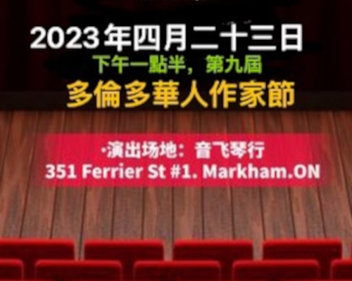 4月23日,世界读书日(World Book and Copyright Day),多伦多华人作家节迎来第九届的庆祝活动。今年的活动主题是“汉字的传承,应用和发展;汉语的沟通,表达和温度”。