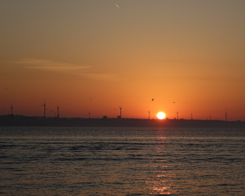 因为对岸并非水面,而是陆地,日出的景色与上次在Turk Point省立公园的略有差别。不过与众多风车交相,景色倒也不错,让笔者不枉赶早。等到明亮,笔者也跨过附近的小塔,看看港口的景色,也算对Port Burwell有更多的认识。等到我从公园出来,入口车辆可以进入,依然没有工作人员,赶着晨色,我赶回营地,准备早餐。