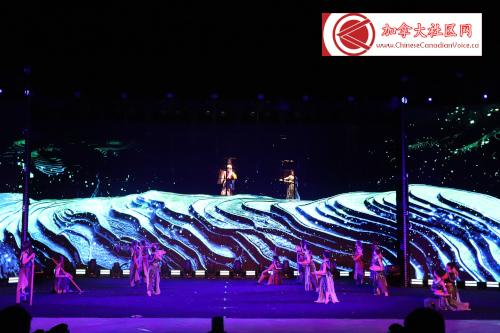在“生生不息”画卷中,仿佛生命的力量在这里涌动,从潺潺的溪流到茂密的森林,从忙碌的人群到欢跃的动物,无不彰显着生命的顽强与延续。而“星辰永耀”画卷展现在黑暗的夜空中,星辰依然璀璨夺目,它们如同永恒的守护者,照亮着这片充满故事的大地,让希望与梦想永远闪耀。演员通过舞台艺术由风情衍化情感,由情感透射文化,将艺术的观赏性、旅游文化的娱乐性,与世界对话的融通性有机贯通,给现场嘉宾呈现别具特色的视听画卷,演绎美轮美奂的“梅山现象”。