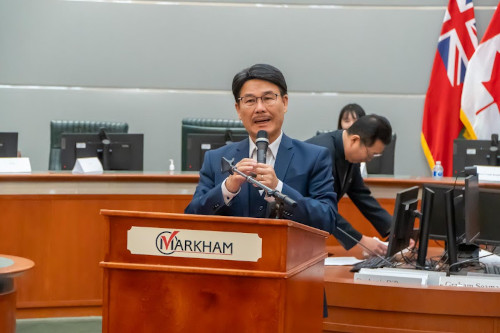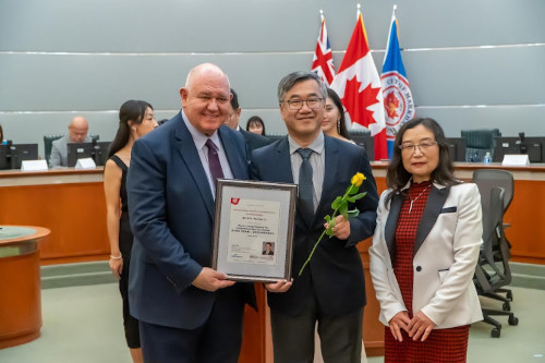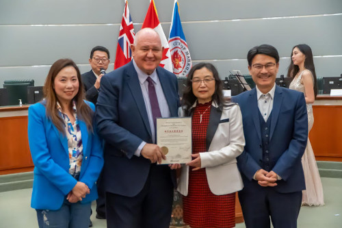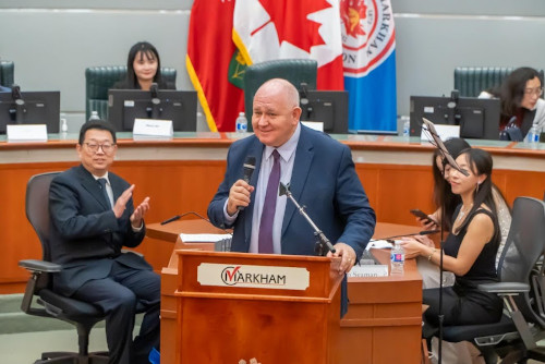 组委会荣誉主席、万锦市市长薛家平全力支持过每一届“加拿大商务日”。在讲话中,他高度赞扬了加中企业家联合会在促进经贸合作和服务社区方面取得的卓越成果。他还特别表扬了本次获得“加拿大企业家大奖”的龚卫彬博士,肯定了其在上海成功开发北美广场商业地产的成就,以及在新能源汽车和无人驾驶飞行器等新兴领域的迅速发展和创新表现。盛会还迎来了八位特邀嘉宾的出席,包括加拿大移民、难民和公民事务部长驻国会秘书国会议员蒋振宇(MP Paul Chiang)、国会议员叶嘉丽(MP Jean Yip)、烈治文山市市长David West等。