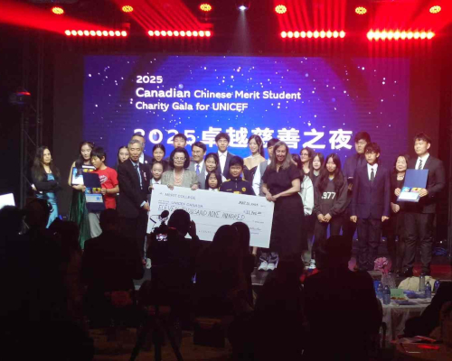 由Merit College与卓越学生会联合主办的“2025卓越之夜”慈善晚会(2025 Canadian Chinese Merit Student Charity Gala for UNICEF)于5月31日在多伦多新动力演播厅圆满落幕。本次晚会以“帮助海地地震受灾儿童”为主题,共募集善款$17,900,用于支持联合国儿童基金会(UNICEF)、大学奖学金项目及本地慈善医疗机构,为全球及本地有需要的青少年群体和社区提供帮助与希望。