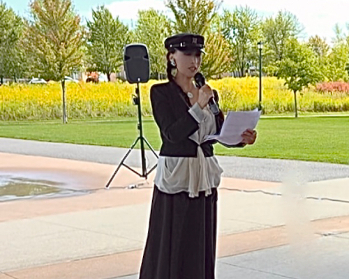 活动在祥和的腰鼓表演中拉开帷幕,唐森先生用中、英、法文混唱唱加拿大国歌为庆典增添庄重氛围。中华同乡联合总会执行主席刘丁绰女士在致辞中成为全场焦点。她表示:“中秋是团圆的象征,更是我们海外华人传承文化、凝聚乡情的重要纽带。我们虽身在异国他乡,但同根同源的文化传承让我们紧密相连。”刘主席特别强调:“中华同乡联合总会将继续致力于搭建交流平台,不仅要加强华人社团间的协作,更要推动中华文化与多元文化的交流互鉴,为构建和谐包容的社区贡献力量。”她还衷心感谢了各同乡会、志愿者和赞助单位对本次活动的大力支持,并表示总会将继续为提升华人社区形象、促进社区繁荣发展而不懈努力。