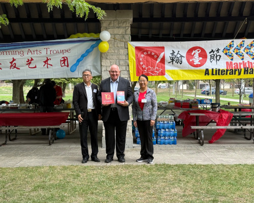 令人瞩目的是,万锦市长Frank Scarpitti在百忙中也特地赶到现场,与大家共同庆祝这一温馨时刻。Frank Scarpitti市长在致辞中盛赞活动主办方加拿大高校文学社与艺术团对社区文化建设的贡献,称此类活动正是万锦市多元文化融合的生动体现。他鼓励大家用自己手中的笔,继续书写在加拿大的新生活–安家与创业的故事,用艺术和文学传递积极向上的力量,并热情地与现场参与者合影留念,将活动气氛推向高潮。