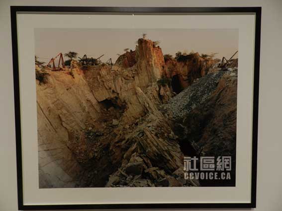 她热情而简单介绍美术馆之后,让我自行自由参观。整个美术馆有三个展馆,目前展出有两个人的作品。第一部分是世界级摄影大师Edward Burtynsky的作品,这是他送给美术馆的礼物,所以属于美术馆自身的展览。尽管占了两个大的展厅,但还只是一半。这些作品纵横20年,景点取自中国和印度,场面令人震撼,体现人与自然之间的博弈。