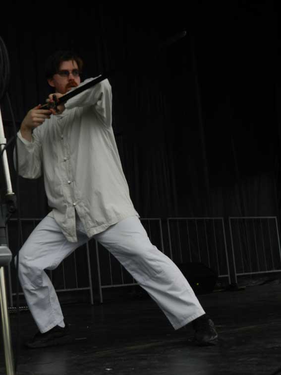 [本报记者 基其纳采访报道] 在KW多元文化节活动上,一组地道的太极拳表演吸引了笔者。原因有二,第一,表演非常精致,尽管所配音乐有些奇怪,但是舞台上的表演非常地道、精致;第二,这批表演者,里面没有一个黑头发,黄皮肤的华人,全部是地道的西人。表演结束之后,笔者特意到后台,与该太极拳表演者负责人联系。原来,他们来自“寒山内家(Cold Mountain Internal Arts)”,负责人之一就是带头表演的师傅,Steve Higgins大师。笔者与他交换联系信息,希望对他进行采访。