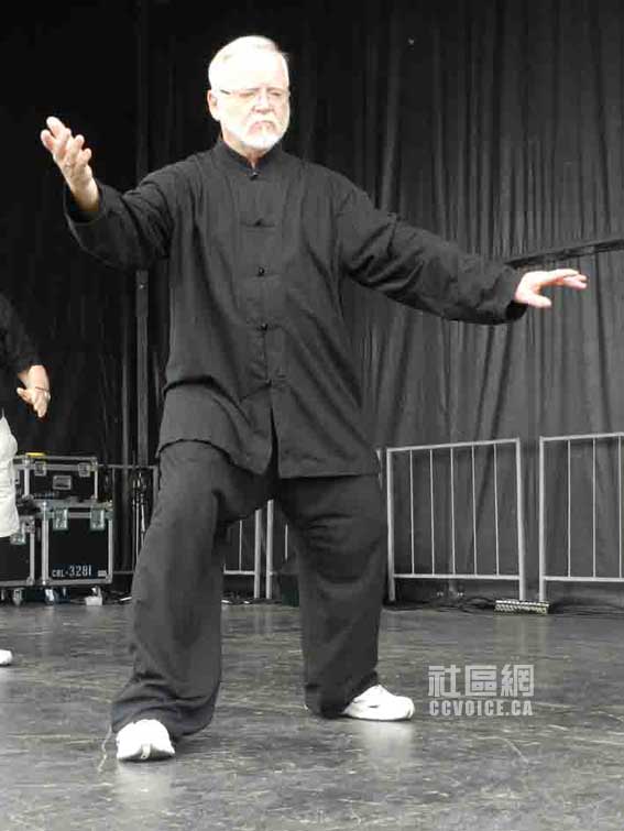 最后一点,笔者更为高兴的是,在练习和推广过程中,Steve没有守旧,相反,他很好地领悟了中华传统文化的精华,那就是继承和发扬。在将太极及其他中国功夫作为武术、保健等推广之后,他还与音乐家合作,将其作为一种艺术表现形式,搬上大堂,并取得良好的效果。笔者相信,在Steve的坚持和执着下,太极会有新的飞跃。