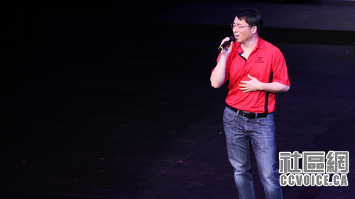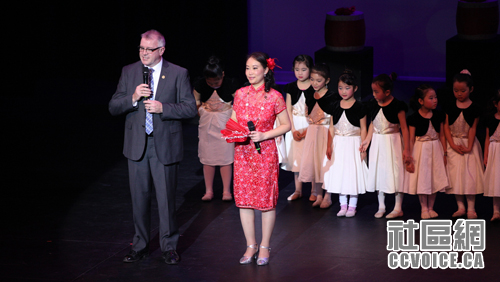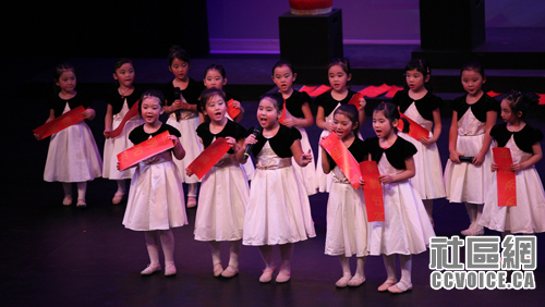 接下来的部分还有于连胜表演“手技”、Li Chen的“我爱Oakville”、叶芳少儿舞蹈艺术苑的“和平之光”、Sunshine等的古筝与朗诵结合、由新天地文化中心曹理平表演的“曙光”等。歌舞组合有王琳与王晓明的“再逛Oakville”、王琳所演唱的“我愿”、杨洋舞蹈工作室的“我愿的喜悦”。最后在王天石、卢艺等领唱下,全体演员参与的大合唱“相亲相爱”将本次春晚拉上帷幕。(摄影 Daniel)