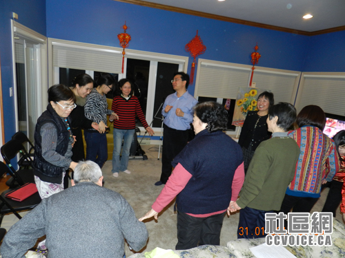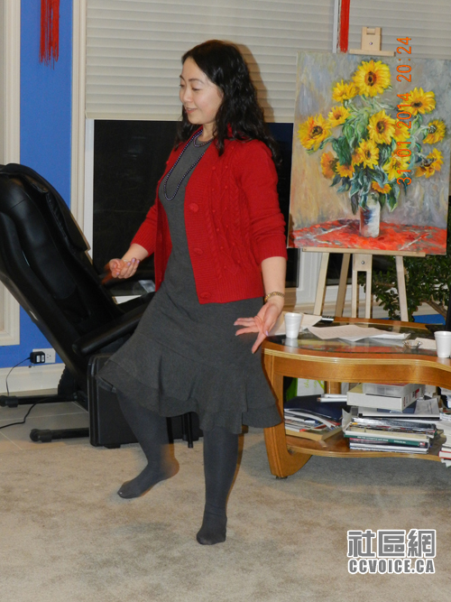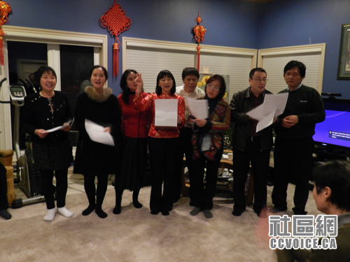 当晚的文艺节目也相当丰富,不仅有生命小组的合唱《唱一首天上的歌》和中国老歌《贺新年》,还有独唱、小孩舞蹈,以及滑铁卢才女汤静的舞蹈秀。杨牧师还特意率领大家习唱《耶和华的臂膀环绕着我》等。