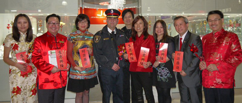 烈治文山市万锦市华商会多位会董,在1月31日大年初一联同约克区警察总长Chief Eric Jolliffe和多位烈万市议员,到万锦市和烈治文山市的华人商场向商户拜年,大派挥春,祝愿区内市民在马年马到功成、事事顺利、身体健康、财源广进,商户生意兴隆。