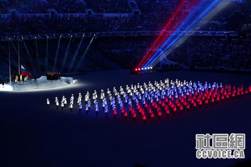 当晚的开幕式近两个半小时,共3000多名表演者参与其中,3500组烟花菲施特体育场的上空照亮。开幕式总导演埃伦斯特表示,奥运会的开幕式是主办国展现自己的一张重要“名片”,在索契冬奥会开幕式的演出中,他的团队着重带领界亿万观众了解俄罗斯,展现俄罗斯的历史、文化、艺术,让人们感受到来自俄罗斯的爱。(中新社 供稿)