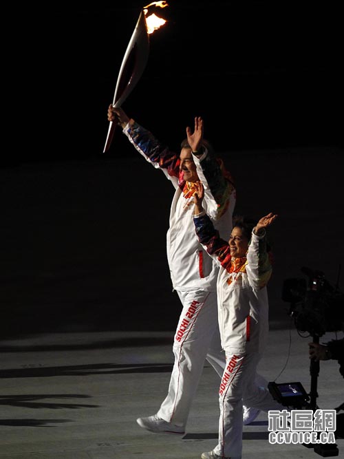 令人瞩目的点火仪式,主火炬手是由两位前苏联时期的传奇巨星花滑名宿伊琳娜•罗德尼娜与冰球明星弗拉迪斯拉夫-特列加克共同担任。