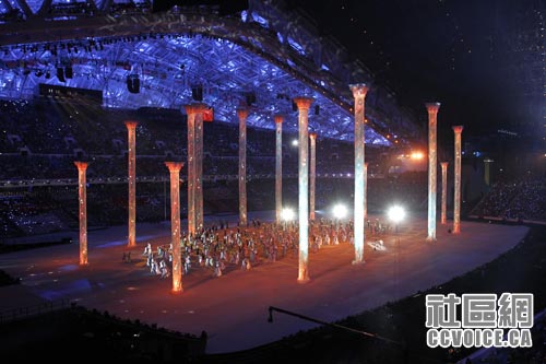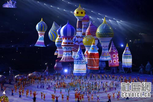 今晚的大型文艺表演分为三大部分,分别是中世纪的俄罗斯、俄罗斯帝国和当代俄罗斯。值得一提的是,整场演出融入非常高的科技含量,从希腊航海员在2000多年前发现索契,到伊凡四世创立了第一个沙皇帝国,再到1917年的十月革命以及1950年代后俄罗斯的快速崛起,让观众在不到一个小时内,“亲眼”见证了俄罗斯的历史变迁。