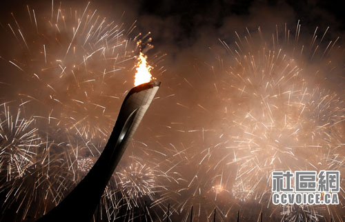 火炬手点燃主火炬